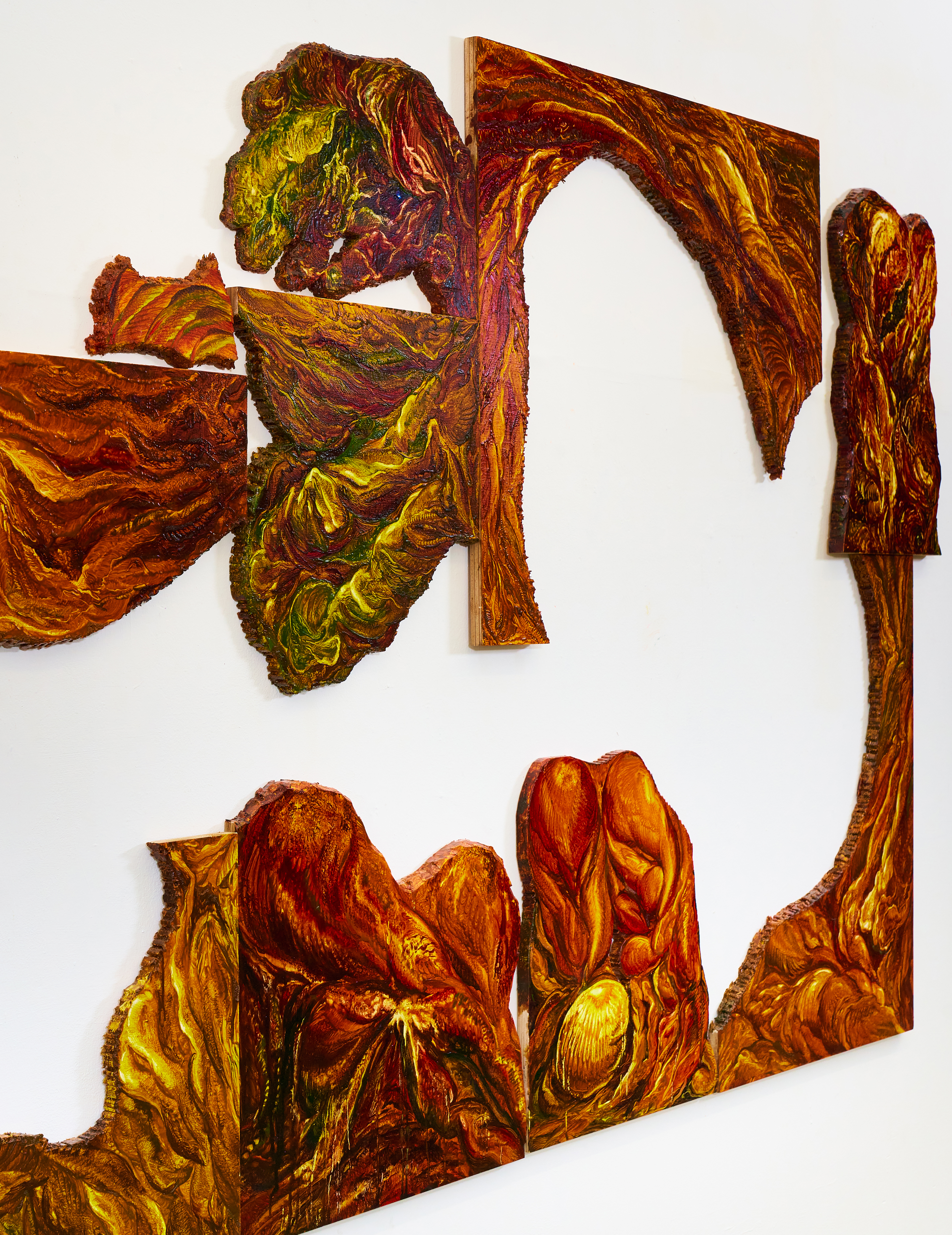 <Visceral Space / 살아있는 공간>,  2023, oil on wood, dimensions variablepresented in Exoskeleton, P21 Gallery, Seoul, Korea